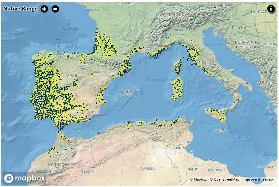 See native range map of Cork Oak ( Quercus suber) for example …